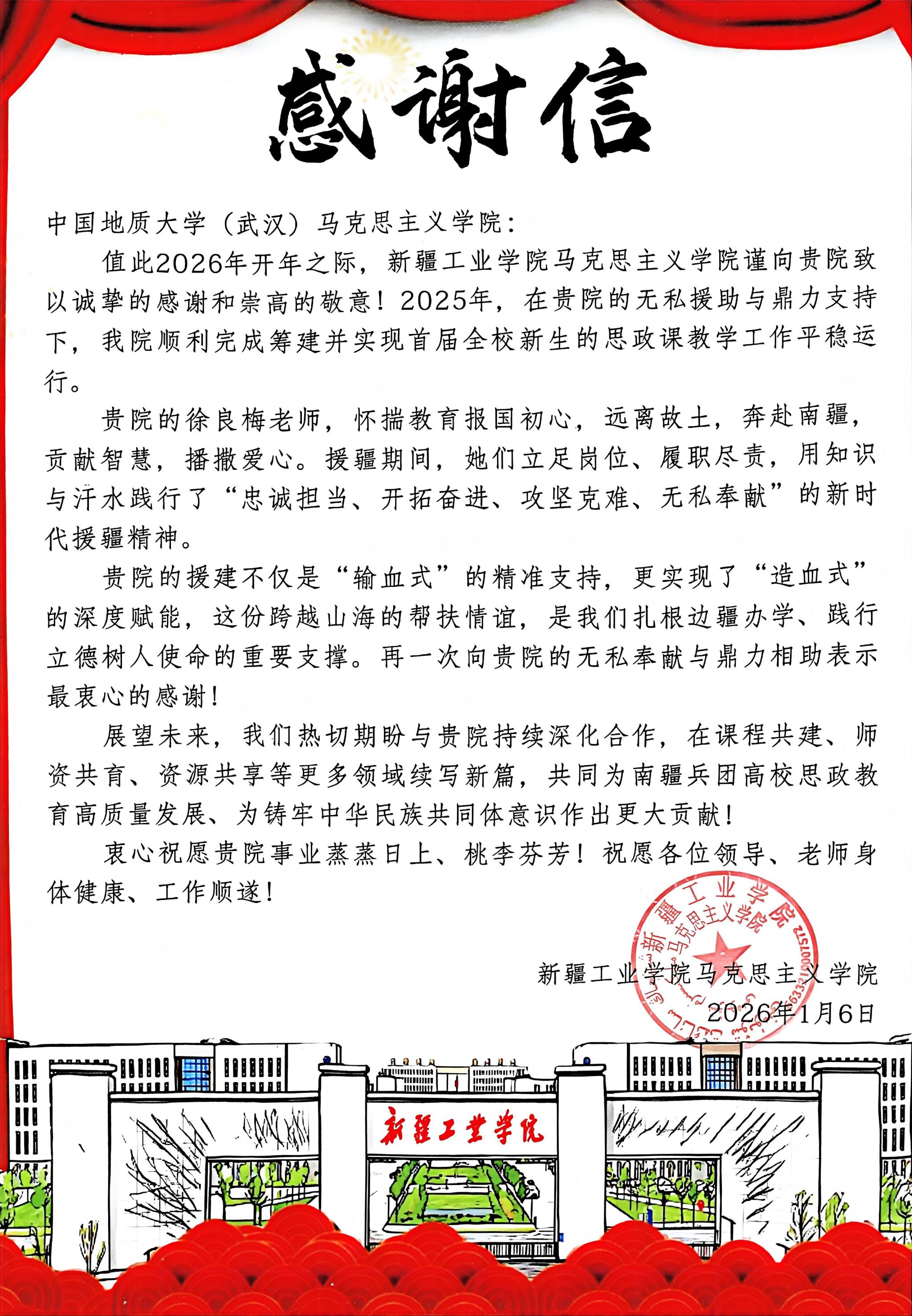 新疆工业学院Bwin必赢感谢信