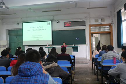 11月19日上午,我院分党校第六期入党积极分子培训班第五讲在教一楼106举行。我院院长高翔莲教授应邀授课。我院、李四光学院、体育课部全体党校学员参加了此次培训。