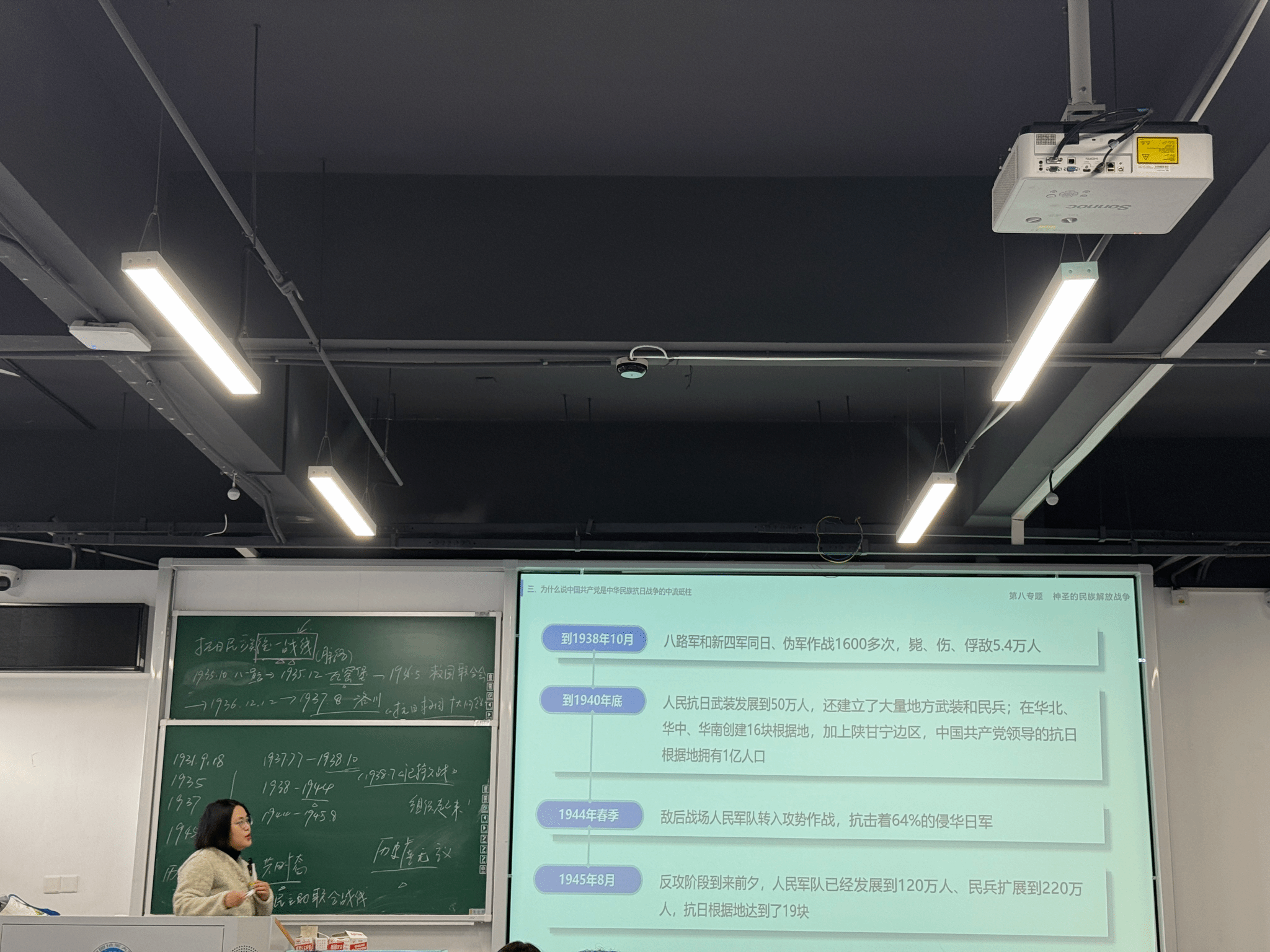 (通讯员 邱雁函 陈彤彤)为进一步学深悟透党的创新理论,切实提升“中国近现代史纲要”课程的教学质量与育人实效,11月28日上午,Bwin必赢“中国近现代史纲要”教研部组织全体教师深入教学一线,走进青年教师董树婷的课堂开展教学观摩。本次活动特邀请学校督导刘郦老师、吴太山老师,副院长孙文沛一同参加。